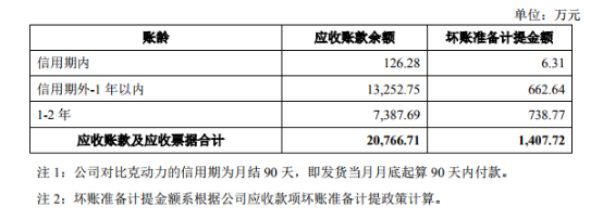 容百科技对比克动力的信用期为月结90天,即发货当月月底起算90天内付款。截至公告披露日,容百科技对比克动力的应收账款及应收票据(含前述已到期商业承兑汇票,不含银行承兑汇票)合计2.08亿元,其中逾期账款及已到期未兑付汇票合计2.06亿元,存在无法回收的风险。