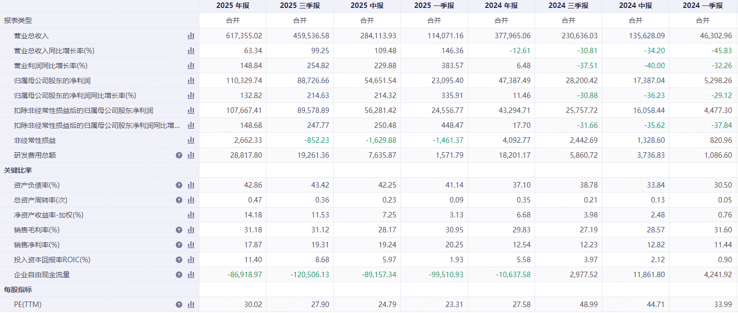 2025年实现营收61.74亿元,同比增63.3%,实现归母净利润11.03亿元,同比增132.8%。