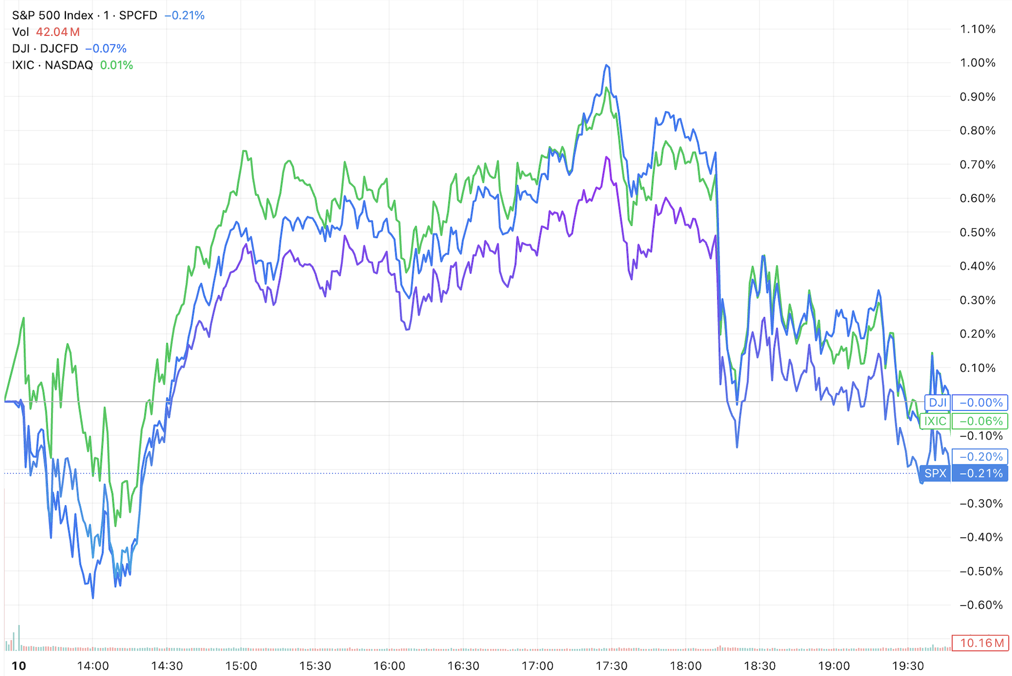 截至收盘,道琼斯指数跌0.07%,报47,706.51点;标普500指数跌0.21%,报6,781.48点;纳斯达克指数涨0.01%,报22,697.10点。