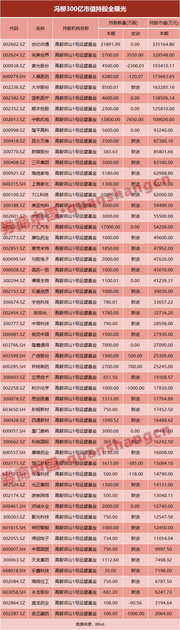 其中,冯柳一人公开的持股市值就高达303亿元,目前持股数量高达54只,从二季度的操作上来看,冯柳进行了大幅度的调仓换股。