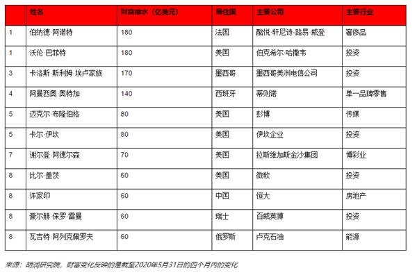 胡润表示:“阿诺特和巴菲特是过去四个月中最大的输家,各自少了180亿美元的财富。阿诺特原本减少得更多,在疫情暴发的头两个月,他少了300亿美元,但在接下来的两个月里,又挽回了120亿美元。”