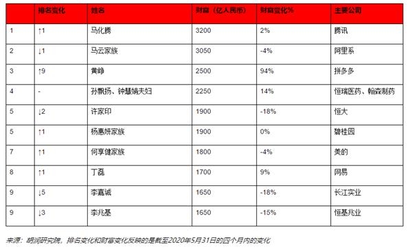 胡润最新富豪榜出炉:多多黄峥每天增长10亿