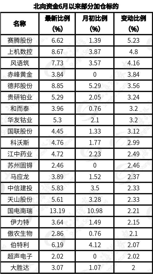 从北向资金加仓标的来看,以占流通A股持股比例计算,赛腾股份、上机数控、风语筑均获4个百分点以上增持。此外,赤峰黄金、德邦股份等18只股票的加仓幅度也超过2个百分点。这些标的大多隶属于科技、消费、医药、有色金属等板块。