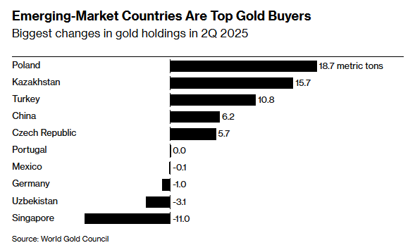 “此轮涨势对新兴市场的利好确实大于发达市场,”她表示,“新兴市场不仅是黄金生产国,更是黄金储备国。”