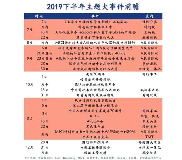 券商看好下半年走势对于下半年走势,券商均给出乐观评判。东方证券指出,就上涨逻辑来看,政策的宽松以及中美贸易摩擦的缓和,将持续提升风险偏好从而抬升估值;而上证50以及沪深300等核心股票基本面的稳定性则将支撑整体A股盈利,从而最终实现A股的上涨。A股风险偏好有望持续修复,继续强烈看好下半年站上3500点。