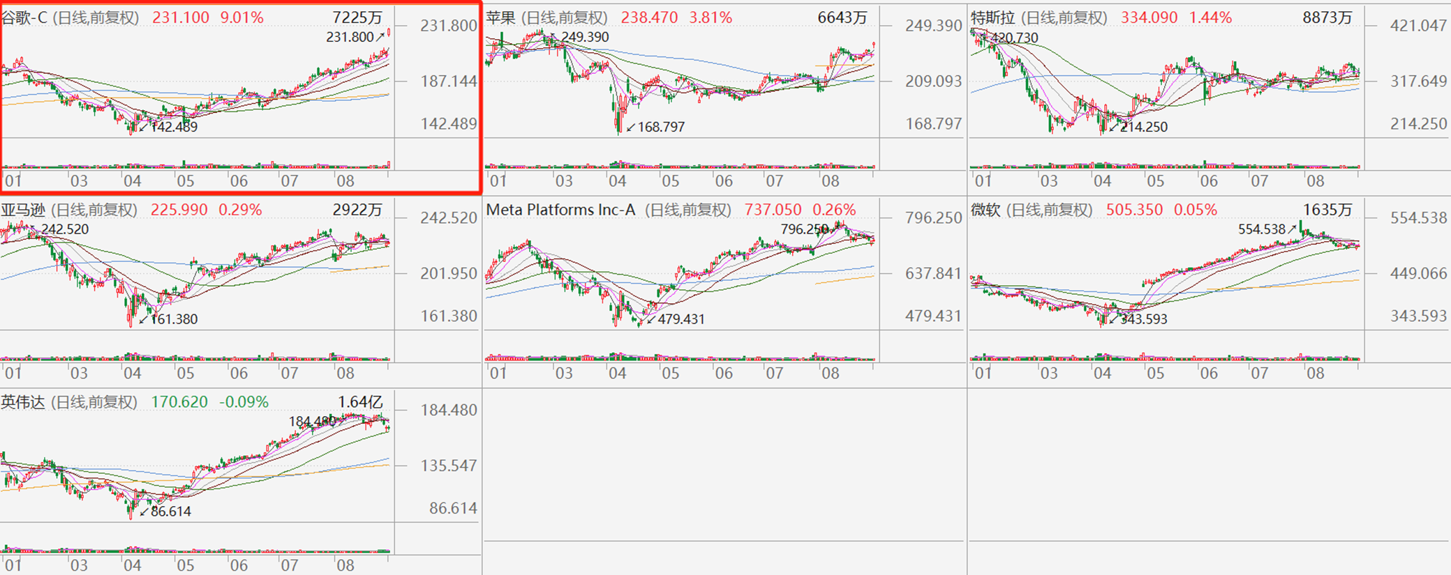 9月4日讯美股七姐妹的“悲欢”并不相通。英伟达、微软、Meta、亚马逊几家股价近日连续震荡的同时,谷歌稳步走强,更在当地时间周三(9月3日)跳空高开,收盘涨幅超9%,股价刷新历史新高。