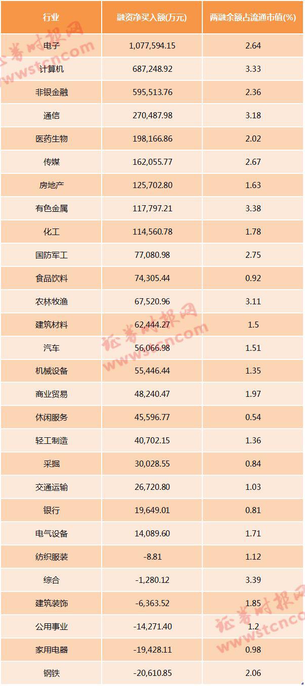 纺织服装、综合、建筑装饰、公用事业、家用电器、钢铁等6达行业则遭融资资金净卖出。其中净卖出净额最大的是钢铁行业,达2.06亿元。