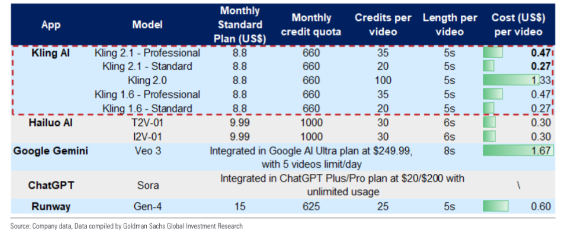 对比AI领域目前正被资本追捧的Agent(智能体),视频模型热度并不算太高。瑞银(UBS)研报认为,视频模型领域的竞争不会像大语言模型领域的竞争那样激烈,主要是受视频模型训练所需的视频语料内容所限。但同时,目前市面上由大厂与明星创业公司组成的战队,正在基础模型效率提高的背景下,加快产品更新与商业化落地。