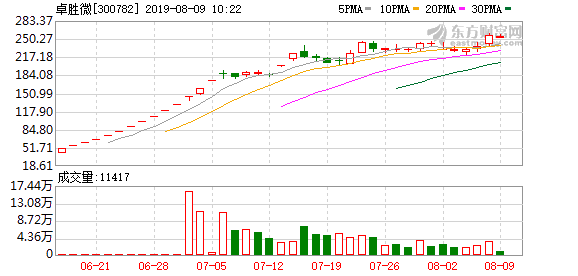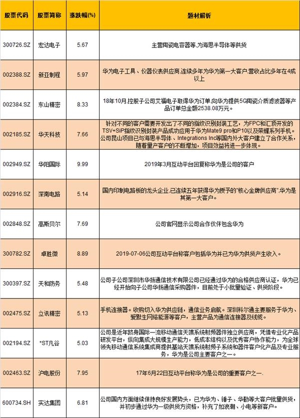 昨日相关的华为概念股提前开始预热,卓胜微和沪电股份创出历史新高。另外,华阳国际、*ST凡谷涨停,宏达电子、新亚制程、东山精密、华天科技、深南电路、高斯贝尔、实达集团等一大批个股涨幅超过5%。卓胜微自打开涨停以来,股价累计上涨超过100元每股。
