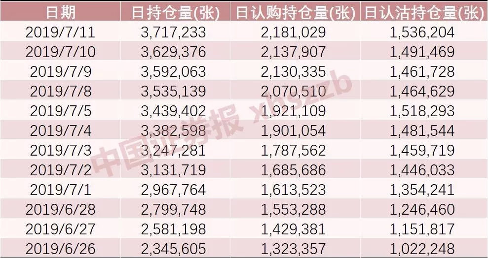 7月10日,上证50ETF期权持仓量突破360万张;7月11日,持仓量突破370万张,达到371.72万张,创历史新高;7月12日,持仓量为371.12万张,仍处历史第二高位。