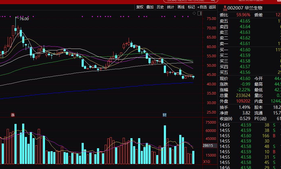 以最新价相比年内高点,部分龙头股调整幅度已经较大。其中,血制品行业中的茅台,华兰生物最新价不足44元,相比高点76元跌幅接近43%。另外,智飞生物、安琪酵母、启明星辰、长春高新等最新价较年内高点跌幅均超过30%,牧原股份、中顺洁柔、双汇发展、隆基股份、海天味业等个股跌幅均超过20%。