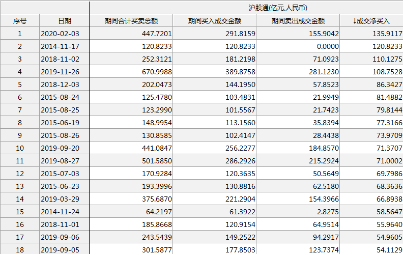 Wind数据显示,2月3日,北向资金净流入181.91亿元,创历史第二大单日净流入额。仅次于去年11月26日(MSCI扩容)的净流入额214.29亿元。历史上北向资金单日净流入超过100亿元的情况仅出现9次。