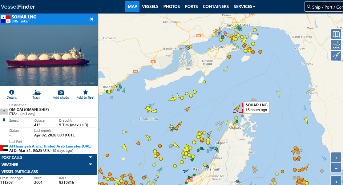 自2月28日美伊冲突爆发以来,LNG船一直避开通过霍尔木兹海峡。船舶追踪网站TankerTracker的数据显示,整个3月份未发现有任何液化天然气运输船通过霍尔木兹海峡。