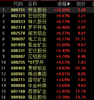有色板块急速拉升!锌业股份、宏创控股强势涨停,神火股份、电工合金大涨超7%,概念股集体拉升。