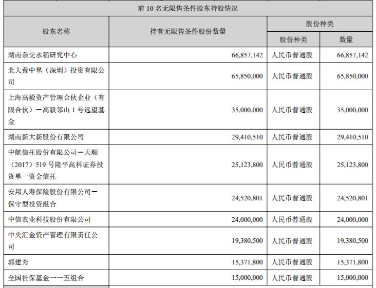 1000万股,这不是小数目。截至2019年三季度末,隆平高科前十大流通股中,第十名的持股数量为1500万股。