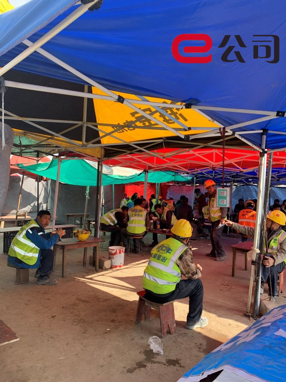 正值中午,记者在现场看到,工人们陆续走出工厂,准备去马路对面吃饭。据工人们介绍,已经进厂工作有两三个月,目前在负责汽车零部件的安装拼接。在吃饭的地方,身着“上海建工”“中国建筑”等标识工作服的工人聚集在一块休息。