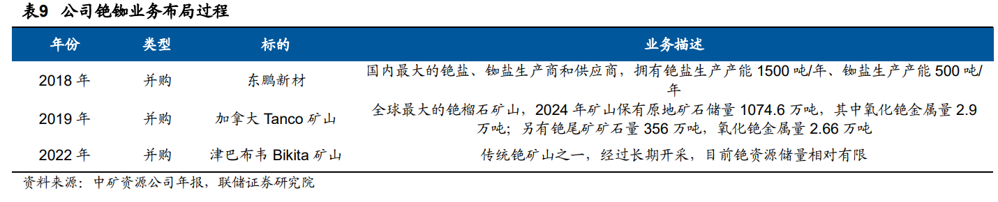 中矿资源 | 53.3 | 25.3 | 14.2 | 10.89% | 锂、铯铷、铜、锗镓 |