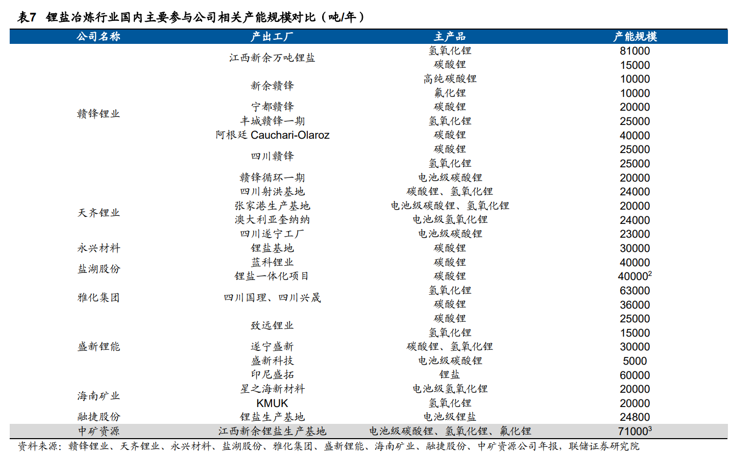 一体化进程持续推进,成本管控能力优异。冶炼端是公司在锂盐产业链中最早布局的板块,相关产能规模持续扩张。2018年,公司购入东鹏新材成功进入有色矿产资源冶炼行业,初步完成了战略转型。东鹏新材冶炼厂位于江西省新余市,源于原江西锂厂,是全国原三大锂盐生产基地之一。收购之初,炼厂具备电池级碳酸锂/氢氧化锂生产产能6000吨/年、电池级氟化锂产能3000吨/年。公司接手后,连续进行了三轮新建、改扩建进程,目前厂区具备6.6万吨锂盐生产能力.其中两条电池级碳酸锂/氢氧化锂柔性产线产能规模分别为2.5万吨/年、3.5万吨/年,可根据客户需求自主调整两类产成品规模,另有6000吨/年电池级氟化锂产线,是国内电池级氟化锂三大供应商之一。2025年,公司再次对年产2.5万吨高纯锂盐产线进行了升级改造,工程完工后,产线产能将提升至3万吨/年,该工程于2025年6月动工建设,总投资额为1.21亿元,预期工期6个月,预计于2025年底完工,届时公司锂盐产能将进一步提升至7.1万吨/年。