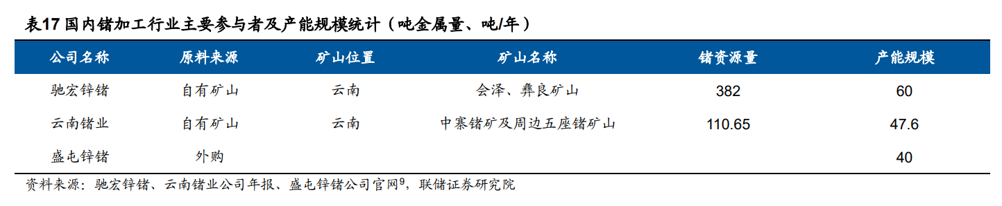 4.锗镓:预期2025年底,公司第一条15吨火法产线可以建成投产,并在2026年逐步爬坡,第二条18吨湿法产线已投入建设,2027年底具备30吨以上锗制备能力。我们预计,2025-2027年,公司锗销量分别为1.5吨、12.75吨、19.5吨。