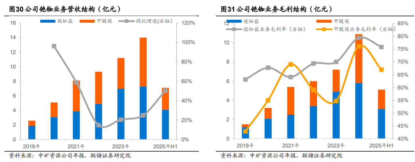 稀有轻金属(铯、铷):是当前毛利率最高的业务。2025年上半年,该板块实现营业收入7.08亿元,同比增长50.43%,毛利率高达72.24%。该业务凭借资源垄断优势,为公司提供稳定且丰厚的现金流。