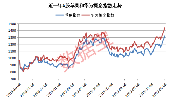 苹果概念指数跑输华为概念指数,5G时代苹果落后了?