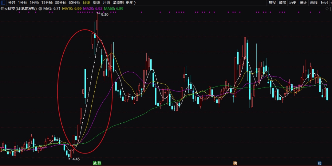 无独有偶,佳云科技也曾出现9天7涨停的盛况。