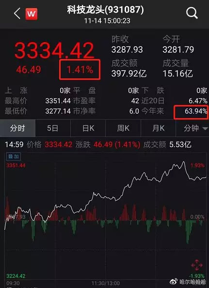 11月14日,A股三大指数小幅收涨,其中科技类指数涨幅居前。同时,在行业板块中,包括智能穿戴、手机、国产芯片、集成电路等一众科技类股票强势领涨。在万亿级科技板块中,多只核心科技个股先后涨停,带动市场刮起一阵久违的“科技风潮”。