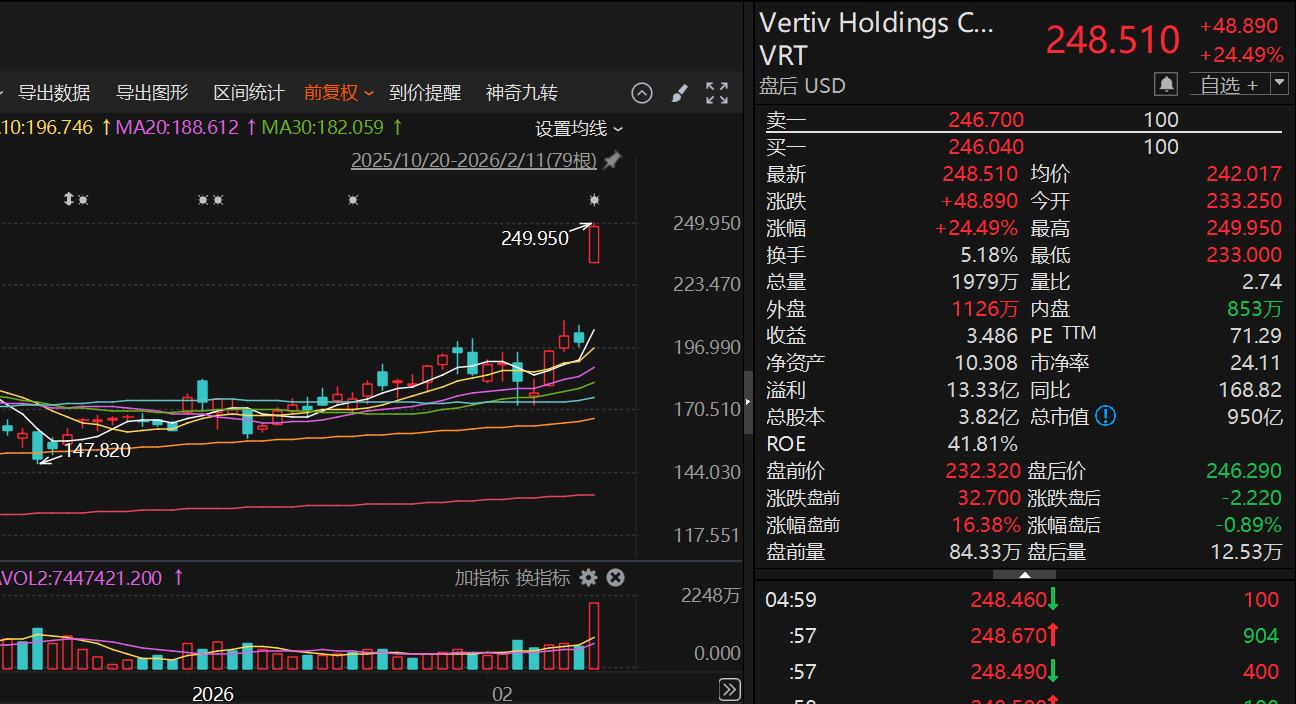 受上述消息影响,昨夜Vertiv美股跳空大涨24.49%,创下历史新高。