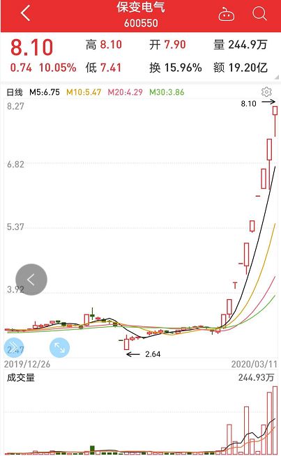 承接连续9涨停之势,保变电气今天早盘大幅高开,持续高位震荡后,在收盘前不到半个小时拉升至涨停板。截至收盘,该股收报8.1元,上涨10.05%,这是该股连续第10个涨停板。