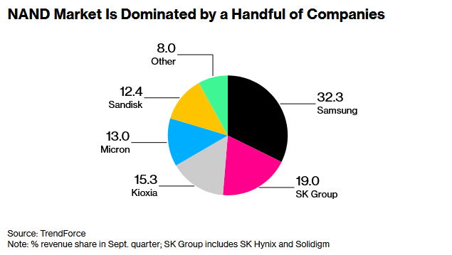 AI对高性能存储的需求,使得铠侠在NAND位密度方面的领导地位显得尤为重要。NAND是用于智能手机、汽车和服务器的存储器,无需电力即可存储数据。寻求节能存储方案的超大规模数据中心正在探索基于NAND的解决方案,铠侠的定价能力也因此得到提升。这对铠侠来说是一个重大利好,因为投资者预期强劲的存储需求和价格上涨将提振其收入。