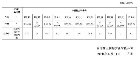 稀土价格上涨也体现在大型稀土集团的挂牌价上。