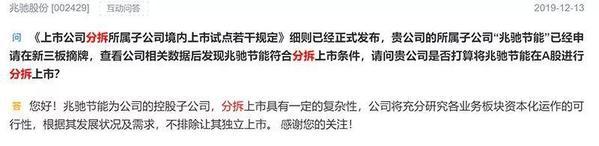 周末,分拆再次成为互动易平台上的热词。而部分上市公司与投资者一样,已经迫不及待在投资者互动平台“官宣”有分的利好。截至目前,四家公司发表了观点。