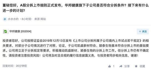 华邦健康董秘15日晚10点在互动易上透露的“分家”意图,让公司的投资者们一夜好梦。