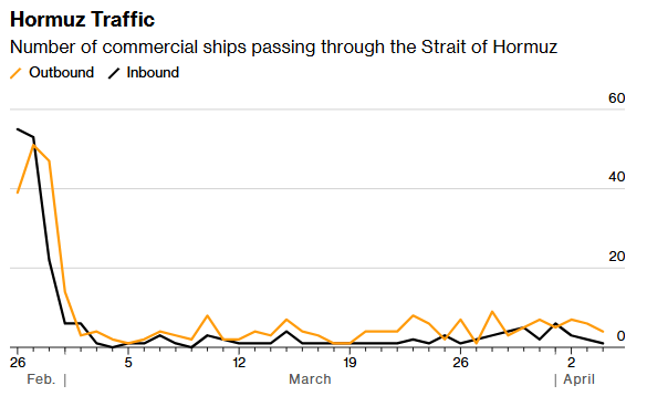 当然,虽然海峡通航恢复势头喜人,但与2月28日战争开始前的数量相比,这仍只能算是涓涓细流。在正常时期,全球约五分之一的石油和液化天然气每天都要经过霍尔木兹海峡。