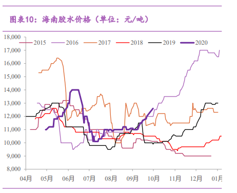 三季度海南胶水价格上涨600元达到12600元/吨