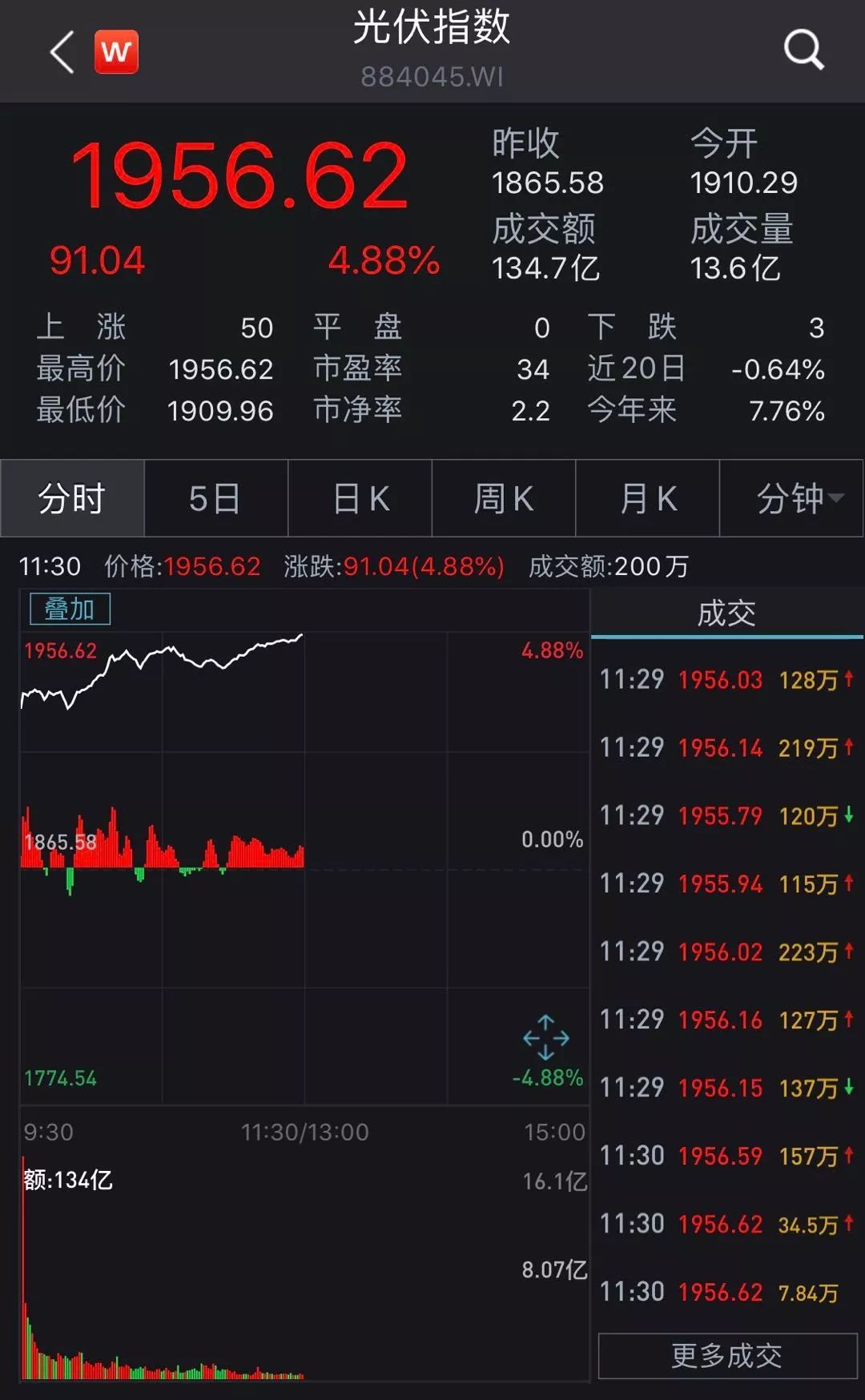 受特斯拉推进安装太阳能屋顶消息影响,Wind光伏概念指数今日大涨,截至上午收盘涨幅达4.88%,半日市值增加391.75亿元。