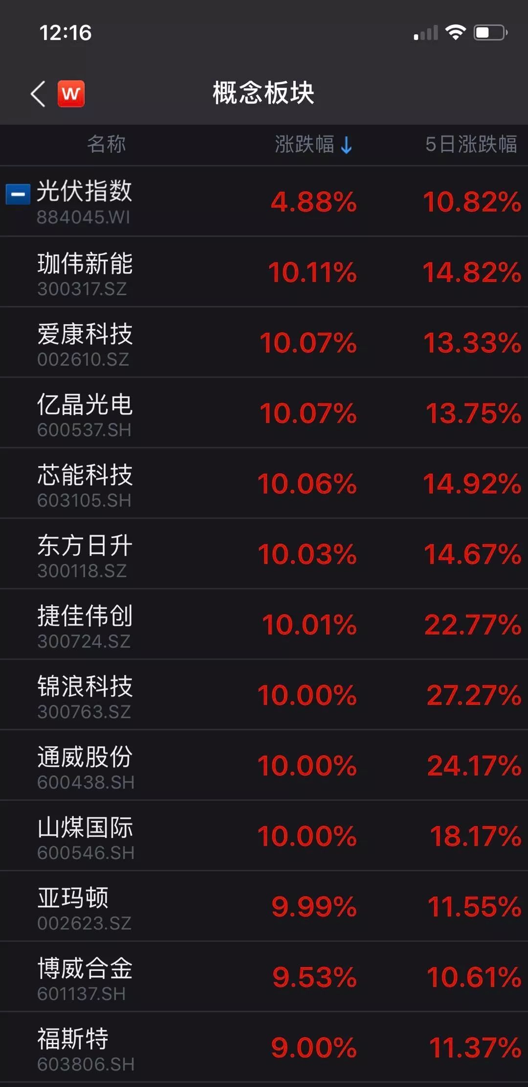 受此影响,A股光伏板块今日大涨,截至上午收盘涨幅达4.88%,珈伟新能、捷佳伟创、金辰股份、通威股份、亚玛顿等十余股涨停。