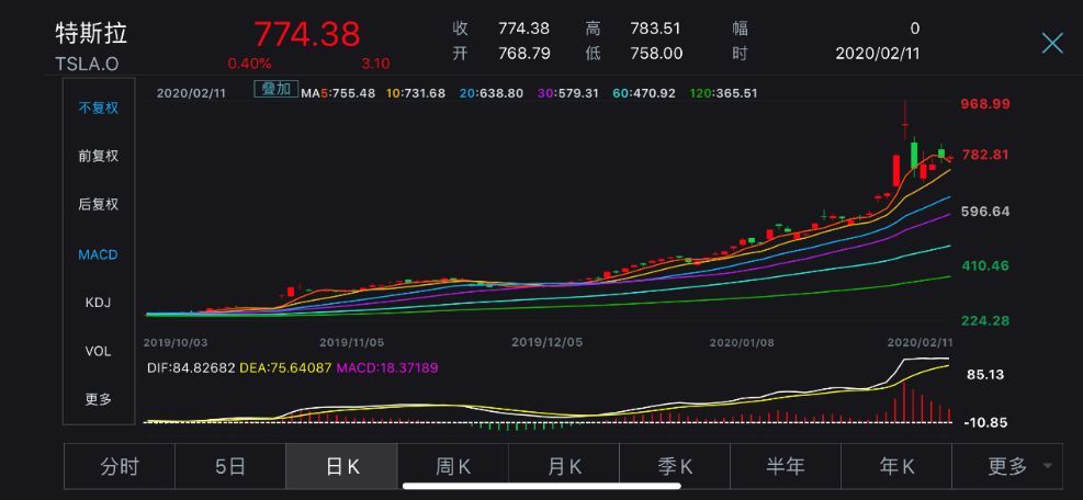 2月4日,特斯拉再度上涨13.73%,报887.06美元,市值直逼1600亿美元。从300美元/股上涨至900美元/股,特斯拉用了不到3个月;若统计今年以来涨幅,特斯拉股价累计涨幅约110%。