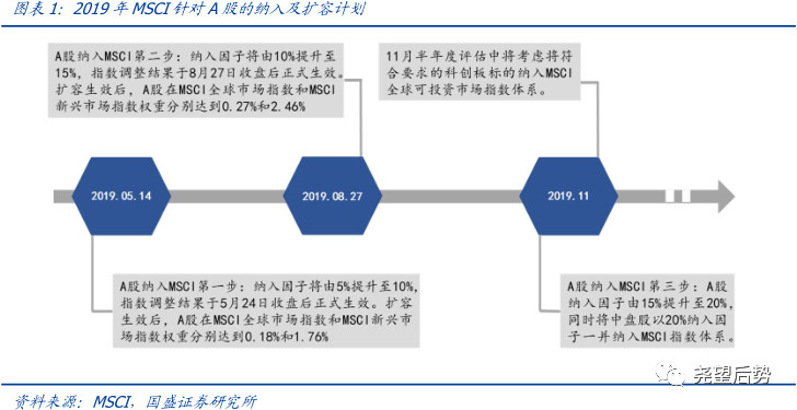 11月,MSCI将把指数中的所有中国大盘A股纳入因子从15%增加至20%,同时将中国中盘A股以20%的纳入因子纳入MSCI指数。