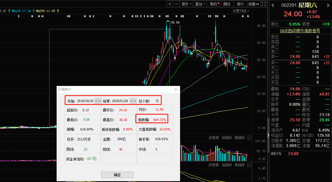 事实上对于A股市场而言,去年年底以星期六为代表的网红直播概念股就火了。行情显示,2019年10月10日至2020年1月20日,星期六股价就坐上了火箭,72个交易日大涨564%。