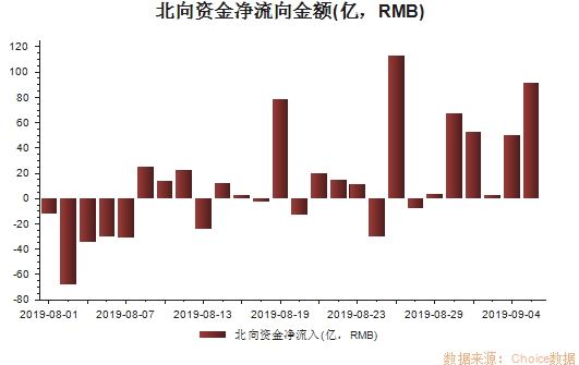 至于9月份,虽说刚刚过去4个交易日,但北向资金是连续净流入,累计净流入金额达194.85亿元,已然超过8月或7月的整月数据。其中9月5日净流入金额为91.83亿元,已是连续第6个交易日净流入。