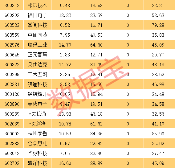 广电电气、永安林业、星网锐捷等多只个股跌停。其中,星网锐捷、万达信息、诚迈科技等个股,均属于处于相对高位的科技股。诚迈科技是本轮行情的一只十倍股。数据显示,该股去年1月份股价只有不到19元,昨日股价一度攀升至353元,一年多时间暴涨18倍多。再比如万达信息,去年8月份股价最低不足9元,前几天最高超过24元,半年多时间涨近两倍。
