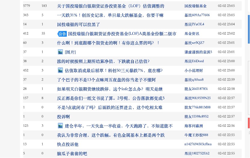 国投白银LOF估值调整的公告一出,基金吧也瞬间炸锅,不少投资者看到这一净值下跌与公告不满。