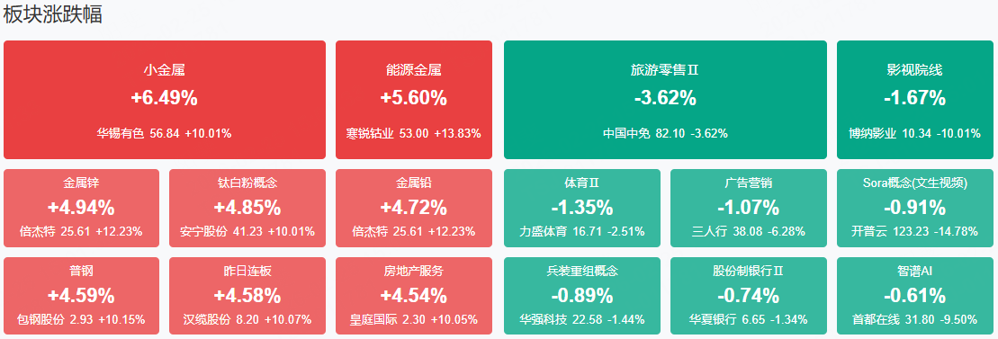 板块方面,稀土、磷化工、油气、半导体、房地产等板块表现活跃,旅游零售、影视院线、AI应用等板块表现落后。截至收盘,沪指涨0.72%,深成指涨1.29%,创业板指涨1.41%。