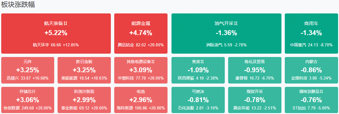 板块方面,算力产业链(PCB、存储芯片、液冷等)、锂电产业链、航空航天等板块表现活跃,石油、煤炭、调味品等板块表现落后。截至收盘,沪指涨0.95%,深成指涨1.61%,创业板指涨2.36%。