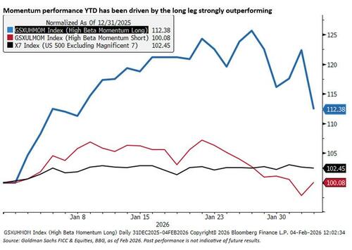 那么,究竟发生了什么呢?高盛发现,周三的抛售主要源于多头策略(“过往赢家”组合GSXUHMOM)的严重拖累,该策略倾向于周期性高波动高贝塔主题。
