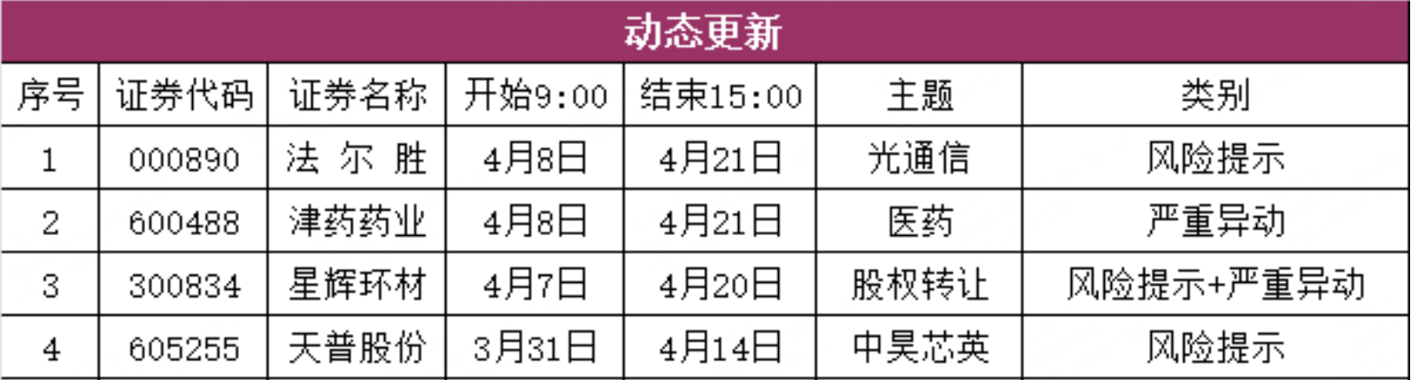 二、异动监管(动态更新)