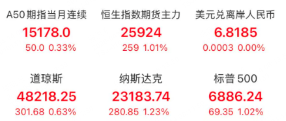 美股三大指数集体收涨,纳指九连阳,热门科技股普涨,甲骨文涨超12%,闪迪涨超11%。