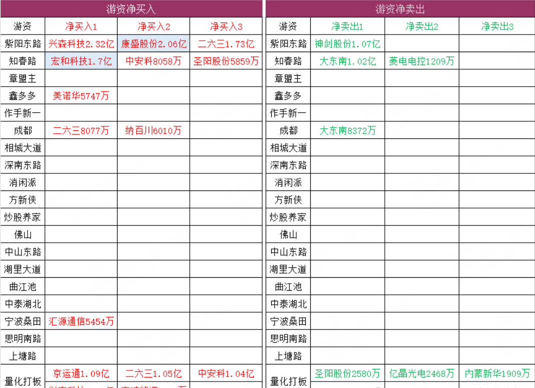 游资动向: