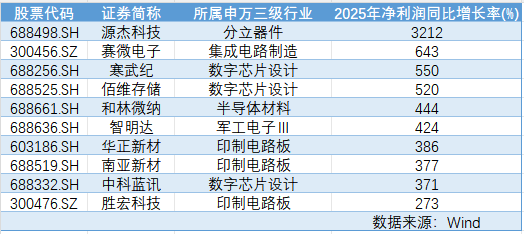 此外,电子行业2025年业绩大幅增长,根据Wind数据统计,截至目前,共有92家电子行业上市公司实现净利润同比正增长或减亏。其中超过1/4的公司净利润增速超100%,近46%的公司增速超过50%,反映出行业整体复苏的基础较为扎实,并非只有少数公司拉动增长。